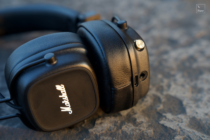 和上一代相比,這一代的耳罩處紋理消失了,看上去更加簡約。另外變化比較明顯的地方還有頭梁中部燙金的 Logo、頭梁兩端的左右標誌。都統一換成了黑色,看起來一體感更強。不過對於一些 Marshall 老粉來説,這樣的改動似乎少了點 Marshall 的味兒。