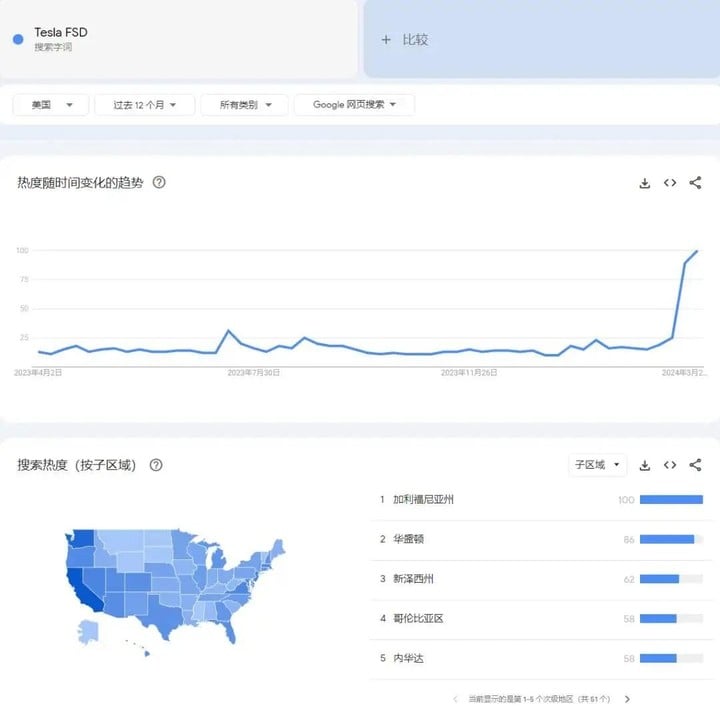 今年 3 月,隨着特斯拉開始向 170 萬車主推送 FSD,「Tesla FSD」在 Google 上的搜索頻率大幅提升,得知自己即將等來這項配置的車主們,開始主動去了解 FSD 的能力邊界。