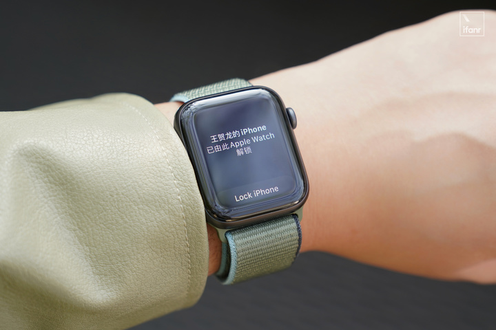 為了增強安全性,當 Apple Watch 解鎖 iPhone 時,手錶界面會自動彈出提醒頁面,並給予震動反饋。