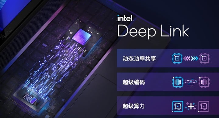 Arc 顯卡另一個重要的特性,就是能與自家的 12 代酷睿處理器及其核顯聯動,通過協同工作發揮出更強的性能,英特爾稱之為 Deep Link 技術。