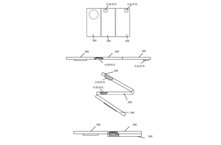 其中一種是在殼體上設置凸起部位來安裝前置攝像模組,並在其他殼體對應位置佈置凹陷部位,這樣在設備摺疊時凸起部分就可以隱藏在凹陷部位中,從而降低摺疊狀態下的整體厚度。