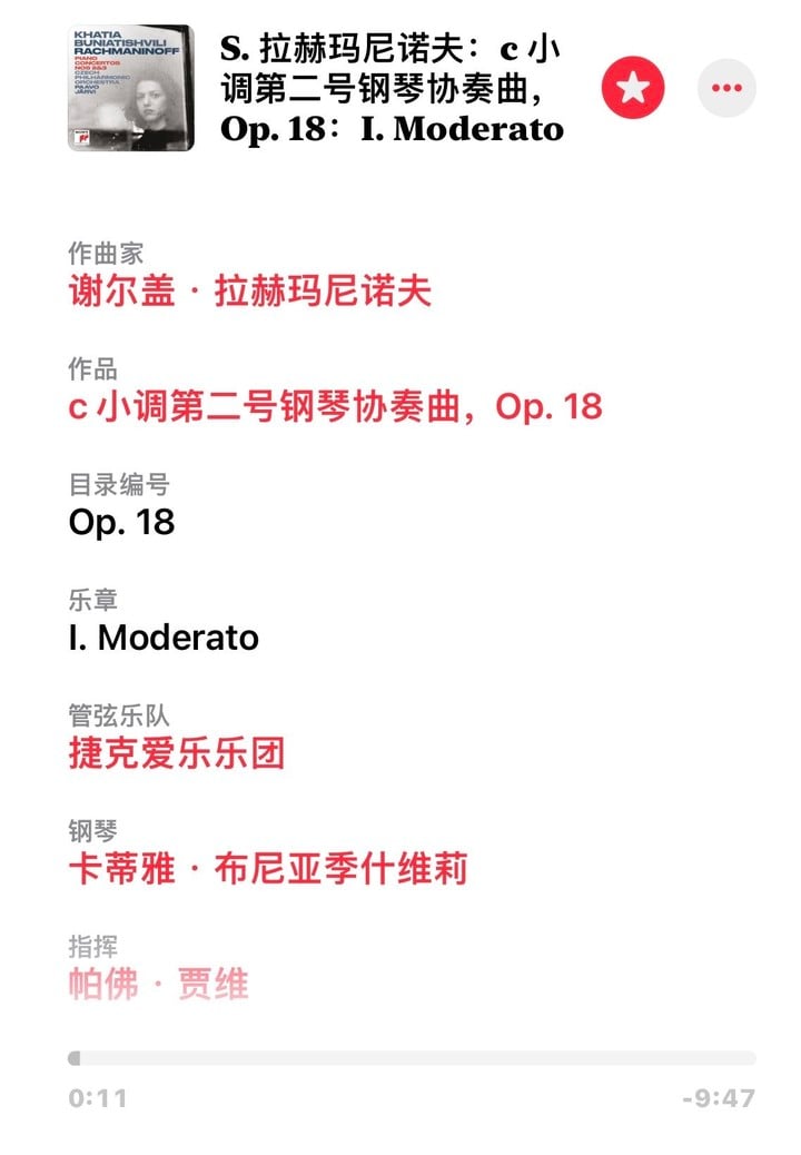 Apple Music 古典樂播放界面還有一個非常有人情味的設置,紅字信息可以點按,跳轉到具體的界面,讓你更瞭解某個作曲家、某個樂團、某個指揮。