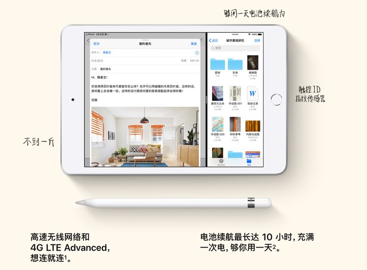 iPad mini 5 的變化主要來自於內部,A12 仿生芯片的加持,讓新一代 iPad mini 成為目前性能最強大的移動設備之一,而支持初代 Apple Pencil,則讓新 iPad mini 有了更廣泛的使用場景。