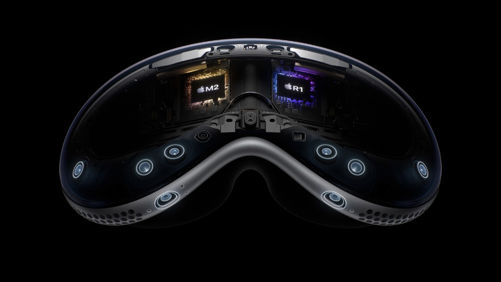 蘋果為 Vision Pro 設計了獨特的雙芯片設計,主芯片是我們熟悉的 M2,負責視覺算法與圖像信息處理,讓 Vision Pro 擁有更流暢的體驗。