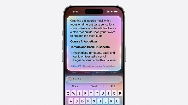 蘋果智能以個人信息和使用情境為基礎,能夠檢索和分析應用程序中的相關數據,並參考屏幕上的內容,例如正在查看的電子郵件或日曆事件等。