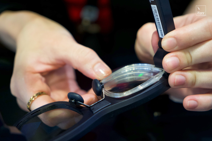 巧妙的是,這副眼鏡框架前後都可以模塊化拼裝。外面以磁吸的方式,加裝墨鏡。裏面則以卡扣的方式,加裝近視鏡片,這對於「近視星人」太友好了。