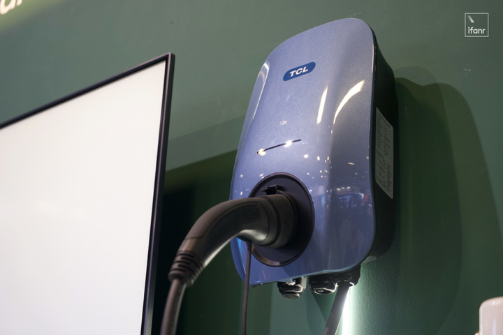 另外,TCL 還展示了一個充電樁,在用電高峯期,給車充此前儲存的電能,由此節約一些電費。這在電價較高的國外,應用潛力較大。