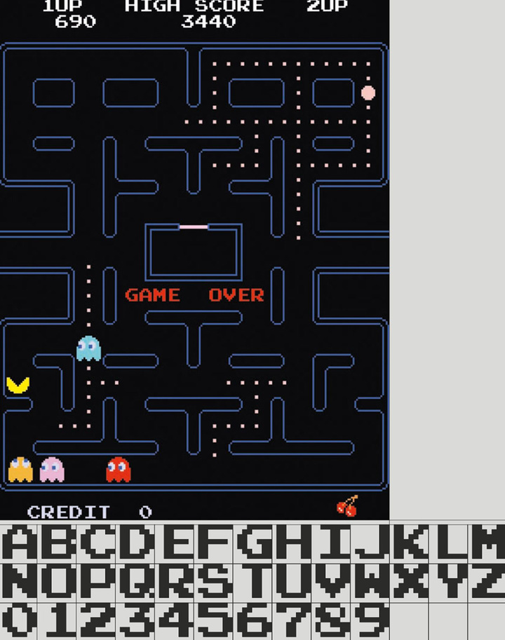 ▲ 街機遊戲《吃豆人》(Pac-Man)的字體. 圖片來自:《街機遊戲字體》