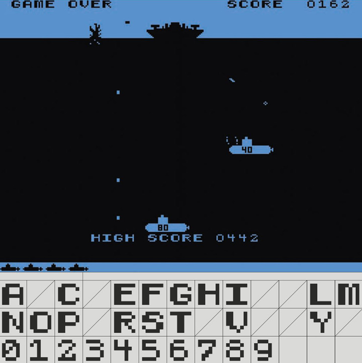 Tehkan 是另一款有着重要地位的街機遊戲字體,由聖迭戈的遊戲製作商 Gremlin 設計,在 1977 年發佈的街機遊戲《深水炸彈》(Depthcharge)中初次亮相。