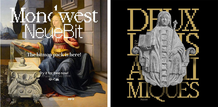 ▲ 像素襯線體 Mondwest 和無襯線體 Neuebit . 圖片來自:字體公司 Pangram Pangram 官網