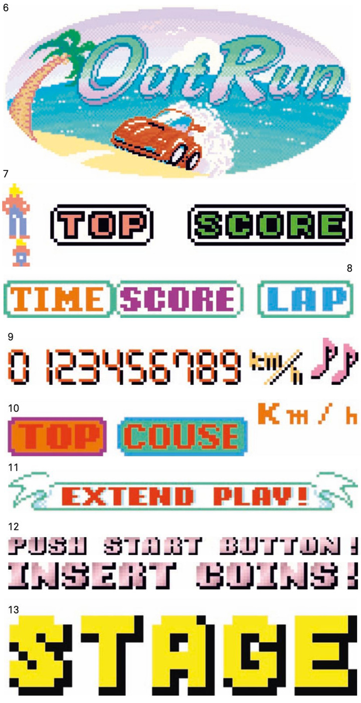 ▲ 街機遊戲《環遊世界》(Out Run). 圖片來自:《街機遊戲字體》