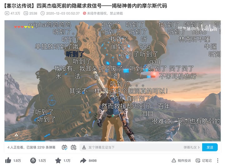 2020 年底,有玩家在《曠野之息》的神獸附近配樂中,發現了求救的摩斯電碼。英傑們求救的信號,在海拉魯大陸迴盪了百年,玩家發現時,距離遊戲發售已過 3 年。