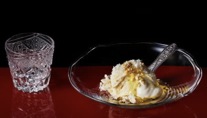 Langham 酒店撒金粉、用特質的水晶杯盛放,奢華至極的維克托利亞雪糕;