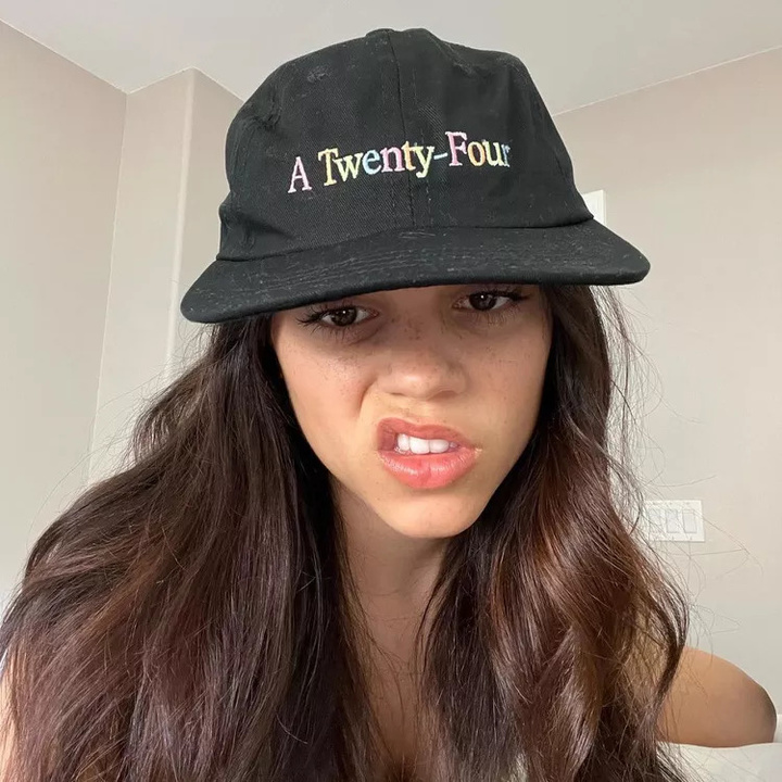 ▲ 美劇《星期三》女主 Jenna Ortega 和她的 A24 帽子