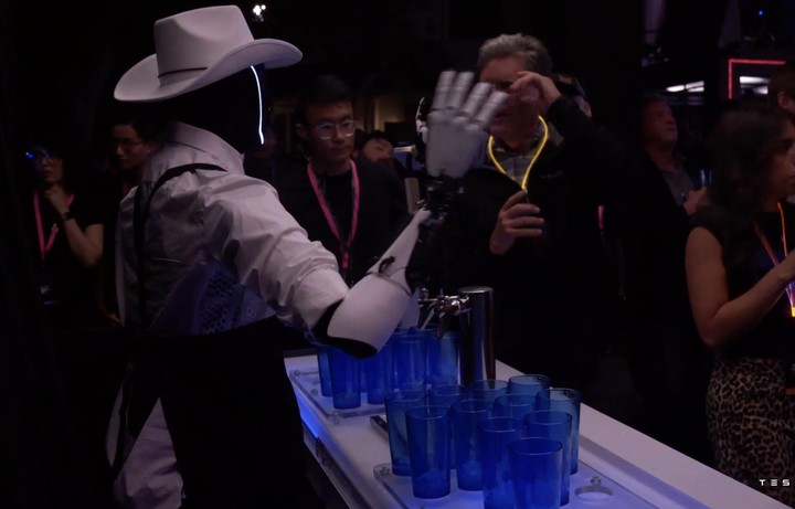 Optimus 在 Cybercab 的發佈會上也一同亮相,和現場觀眾互動問答,成為專業調酒師,甚至和到場嘉賓划拳,馬斯克也在今天的財報會上再次提及了這些細節,他認為 Optimus 已經非常像人類了,而且他非常自信地表示:「我們擁有最先進的 AI 機器人。我們更是唯一一家真正具備量產機器人所有所需要素的公司」。