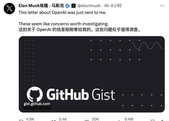 今天馬斯克在 X 上轉發了一封據稱是 Open AI 前員工的匿名信,信中指控 Sam 和 Greg Brockman 在公司向盈利模式轉變期間存在嚴重的欺騙和操縱行為,並呼籲董事會全面調查,保護揭露者身份,反對不道德做法。