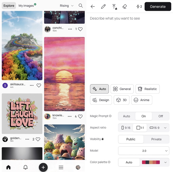 這次除了發佈 2.0,Ideogram 還推出了 iOS app,國內可以直接下載,Android 版計劃稍晚發佈,從網頁到移動端,我們可以隨時隨地生成圖片了。