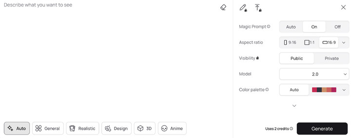 提供範圍有限的選項讓用户「點擊」,相比在空白的輸入框完成「輸入」,交互起來更簡單。想要什麼圖片比例、什麼風格、什麼色調,Ideogram 都可以讓你挑選。