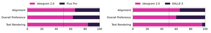 人類評估的結果顯示,Ideogram 2.0 在提示詞對齊、整體表現和文本渲染質量方面,都比 Flux Pro 和 DALL·E 3 更好。