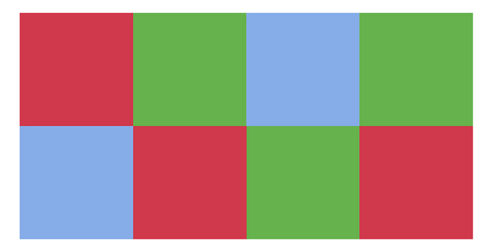 同樣的道理,4:2:0 只保留了第一行兩個像素的色度信息,剩下的像素點會沿用這兩個像素,現在,我們已經丟失了 75% 的色度信息了。