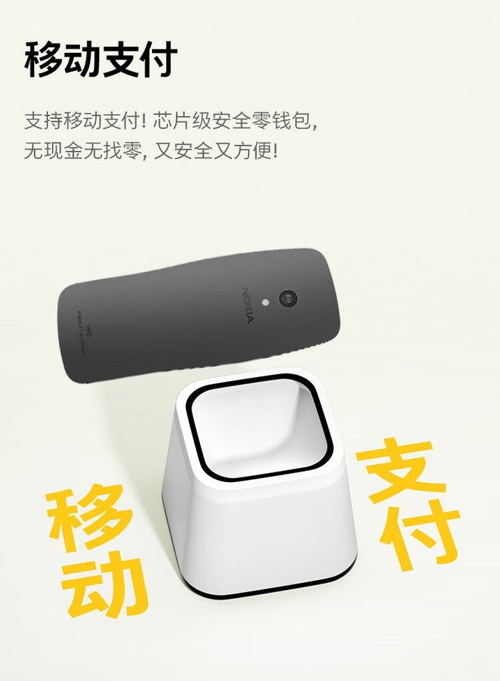它的名稱告訴了我們這是一台「4G 手機」。在移動支付時代,諾基亞 3210 4G 支持使用支付寶進行付款。