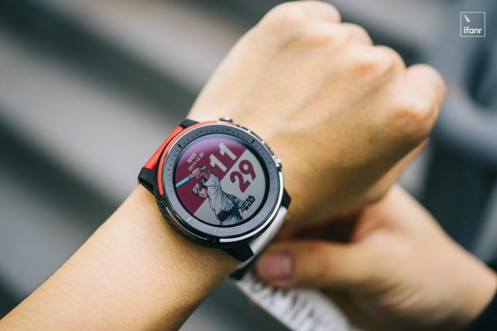 兩款錶盤的設計也差不多,畫面上半部分都以紅色作為底色,下半部分的顏色則和人物有關,Luke Skywalker 用的是白色,而 Darth Vader 用的則是黑色。除此之外,兩個人物還分別代表「白天」和「黑夜」兩個時間,手錶也支持白天黑夜自動切換錶盤的功能,那就能一天用上兩個錶盤了。