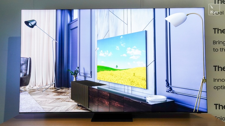 三星官方也強調説,這台電視採用了「Infinity Screen」的設計,使得正面顯示區域達到了 99%,意味着僅有 1% 的部分被邊框所佔據。