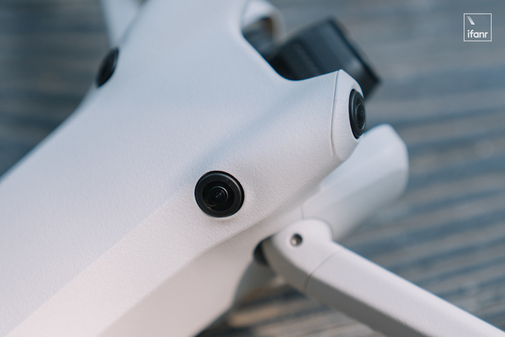 Mini 4 Pro 機頭和底部都配備了視覺避障用的傳感器,而之前位於 Mini 3 Pro 機頭後面的避障傳感器移到了機身兩側,角度也從正向着後側變成向着斜後方。