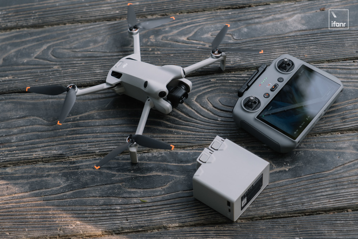 飛機的配色和 Mini 3 Pro 相同,是大疆招牌的暖灰色,機身漆面會做出類似梨皮感的顆粒效果。