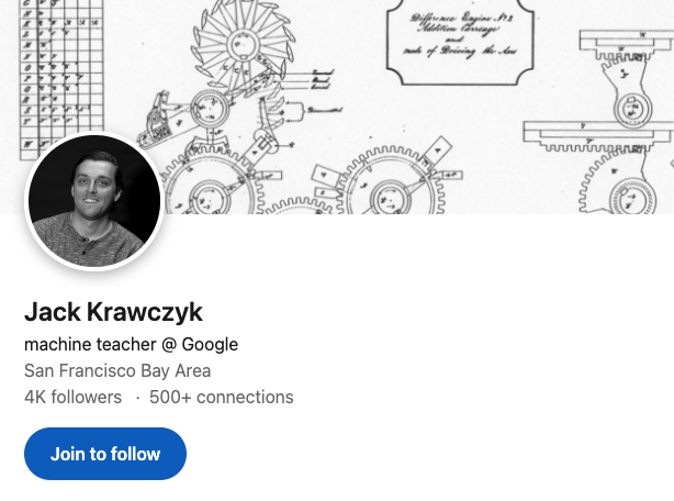 ▲ 他在領英頁面的簡介寫的是「機器教師」