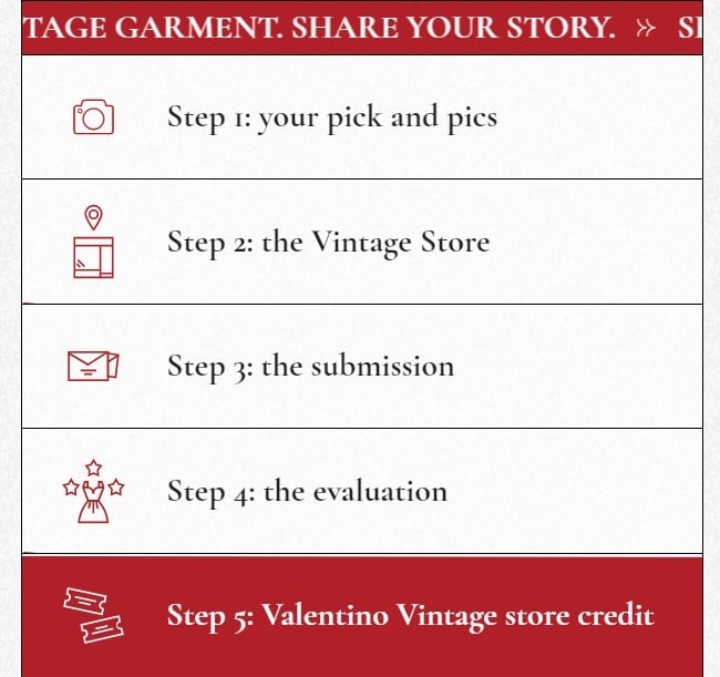 感興趣的消費者通過郵件提供二手產品的照片,如果獲得初步批准,實物需在門店再次評估,由合作的中古店提出報價,若消費者接受報價,即可轉售並獲得相應購物積分。從明年 1 月開始,這些積分可以在 4 家華倫天奴旗艦店消費。