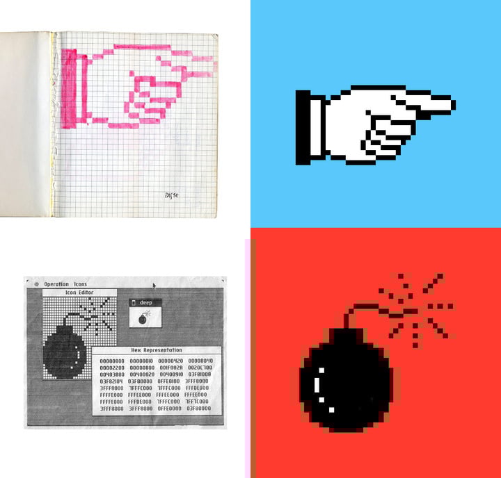 在那個時代,計算機圖形設計尚未成體系,就連蘋果,都還沒開發出完整一套設計工具。迫於無奈,赫茨菲爾德只能先讓卡雷花幾美刀買一本網格筆記本,把圖標手繪出來,再讓工程師轉化為點陣圖標。