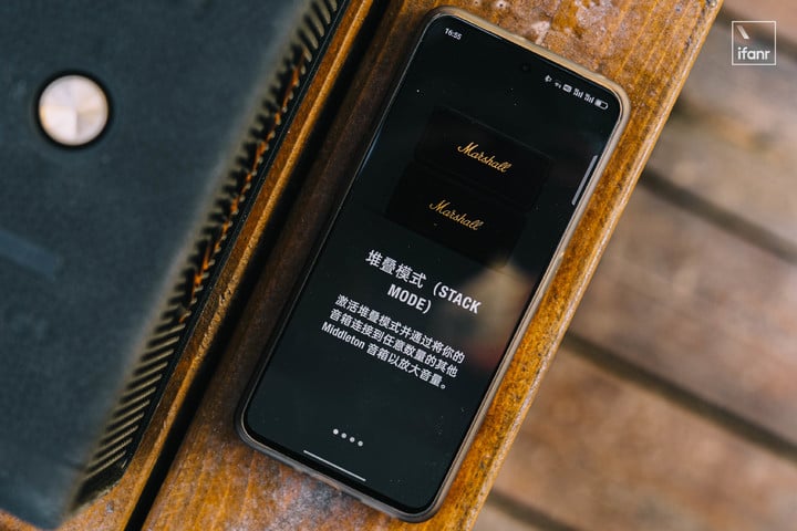 其他功能的話,Middleton 使用藍牙 5.1 的無線方案,最遠連接距離是 10 米,藍牙連接之後可以用 Marshall Bluetooth app 控制音箱,可通過 Stack 功能在連接穩定的情況下儘可能連接多個音箱進行一同播放。