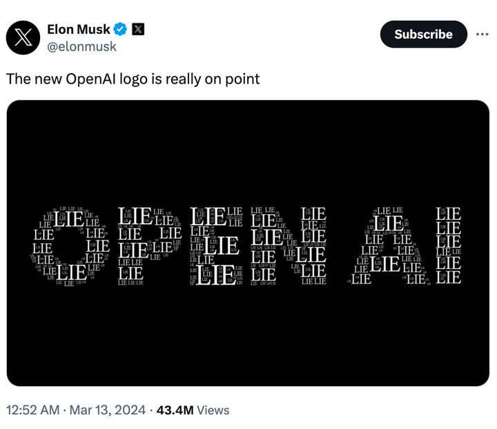 ▲ 馬斯克指責 OpenAI「全是謊言」