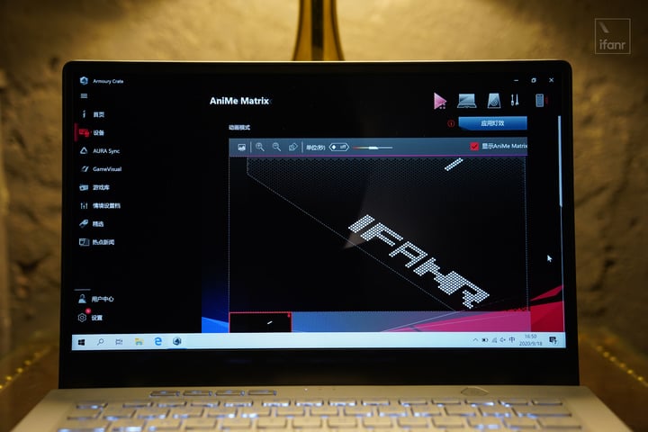 其實幻 14 的 A 面上共有 6536 個微型圓孔,而這些小孔下面則搭載 1215 個白色 mini LED 燈,可以提供 256 級亮度調節功能。正是這些孔和燈,組成了幻 14 上名為 AniMe Matrix 的光顯矩陣屏。