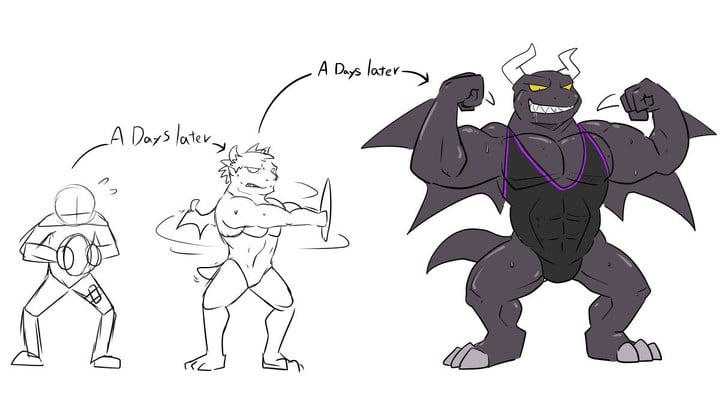 比如説最基礎的深蹲,之後就會進化成了有着更高攻擊力和更大攻擊範圍的高舉雙臂深蹲,而面對的魔獸也從最開始有點可愛的小跳跳,變成了耐久更高的大壺鈴。