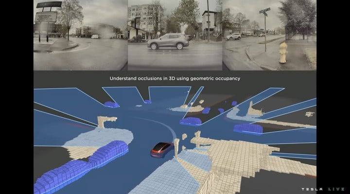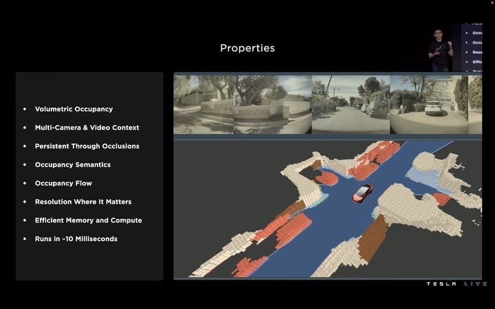 此外,Tesla 介紹了一個名為 Occupancy networks 模型的東西,在這一模型中,我們的世界看起來就和 Minecraft 一樣。在這樣的環境中,即便車輛不能認出障礙物,也會做出避讓動作,安全性得到了提高。