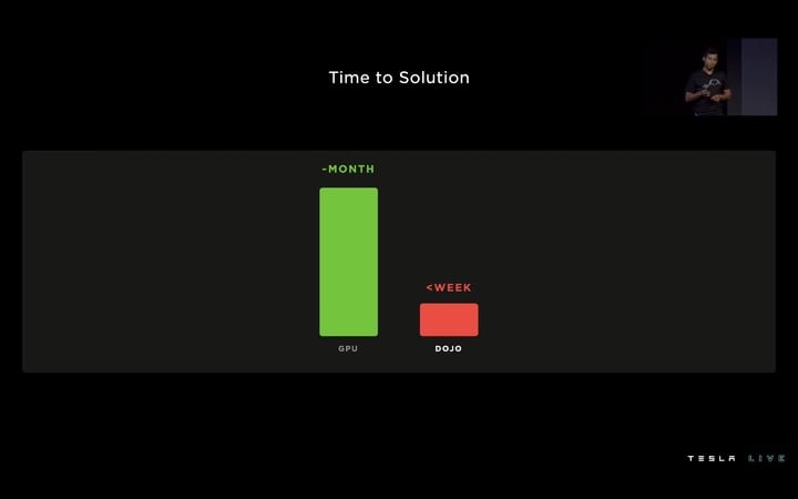 最後我們來聊聊 Dojo。Tesla 説,Dojo 能將原本數月才能完成的訓練,壓縮至幾周。