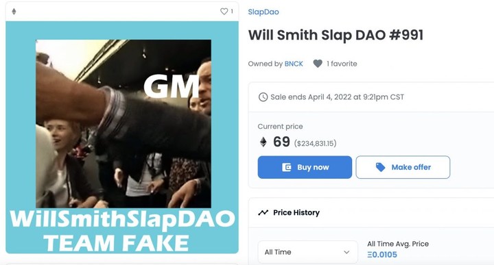 這一巴掌,不僅讓近年來不斷下滑的奧斯卡頒獎禮收視率直線上升,各類社交媒體上,打人瞬間的圖片、動圖以及視頻飛速傳播,由此製作的各類表情包也層出不窮。區塊鏈上,也已經湧現了「Will Smith Inu」加密貨幣與「Will Smith Slap DAO」系列的 NFT。