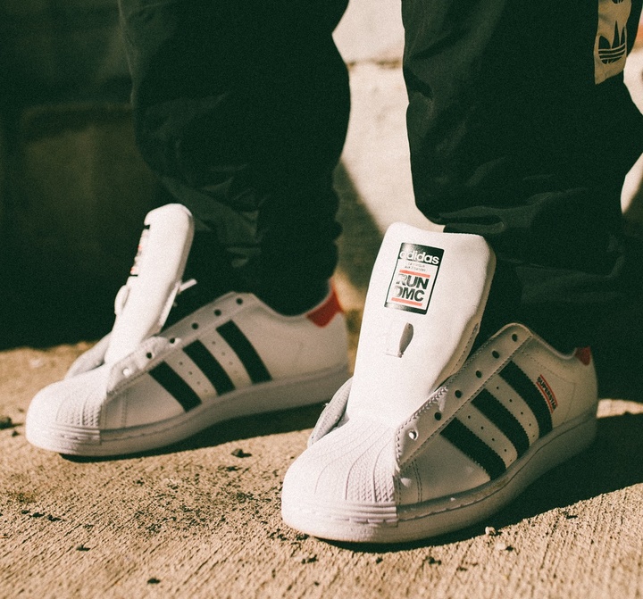 adidas Superstar 的第一款聯名款,是在 1986 年與嘻哈組合 Run-DMC 合作推出的版本。