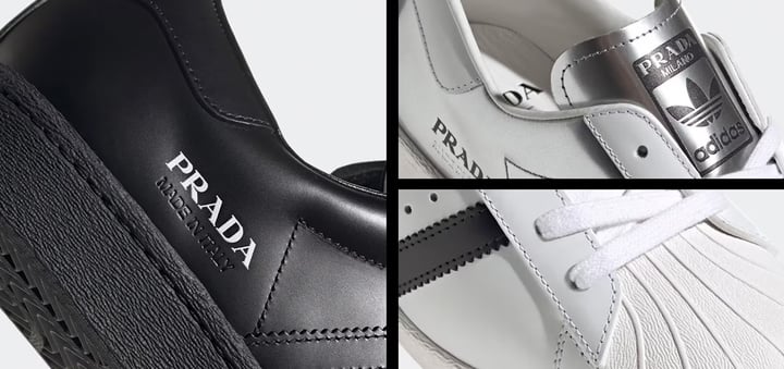 至此,Adidas 和 Prada 聯手將這款聯名從 420 元的 SUPERSTAR 價格抬上了 3300 元的價格。