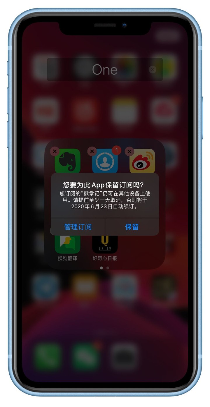 在新版本中,如果刪除了已訂閲的 app,系統會在卸載 app 後彈出是否保留訂閲服務的提示,對於深受訂閲扣費之苦的小夥伴來説,這不失為一個好功能。
