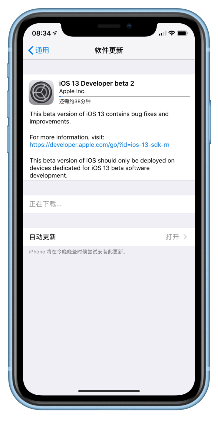 本次 iOS 13 beta 2 升級無需再像 beta 1 版本那樣需要用 macOS 系統設備進行安裝,直接通過安裝開發者描述文件並 OTA 更新系統即可完成,大大減少了嚐鮮的困難度。