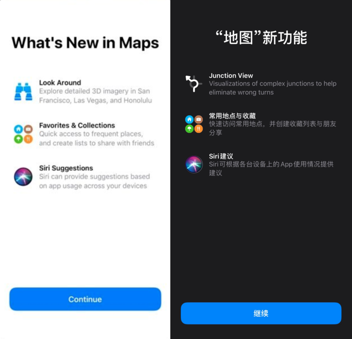 ▲ 中美蘋果地圖的啟動頁區別,美版截圖來源:MacRumors