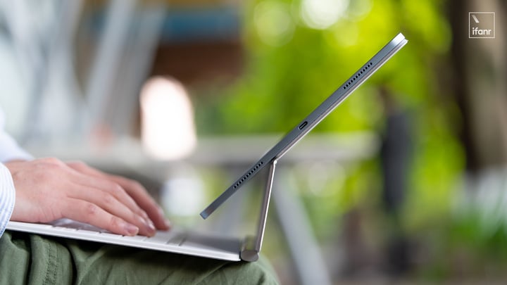 配上新妙控鍵盤除了穩,屏幕離眼睛也更近,特別對於 11 英寸的機主更友好。iPad Air 終於成為一台字面意義上的「Laptop」(放在膝蓋上),從外觀、用法、使用感受,都更像一台筆記本電腦。