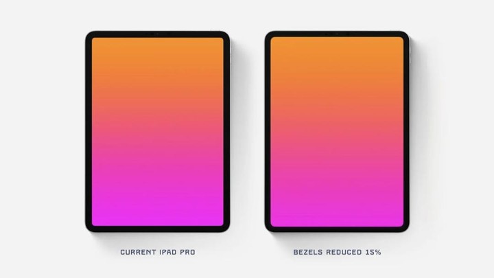 從外觀上看,新款 iPad Pro 的屏幕邊框變窄,根據 9to5mac 的爆料,新 iPad Pro 的邊框尺寸(不含金屬邊框)分別是: