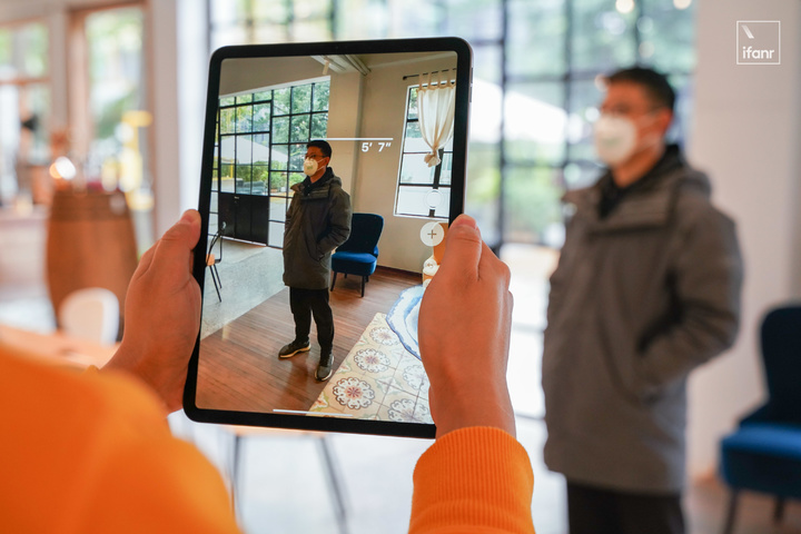 AR 建模的真實度也明顯提升,虛擬物體不會出現此前抖動的情況,即便用手進行遮擋,激光雷達也能探測出手與物體之間的空間關係,究竟在物體前還是物體後。
