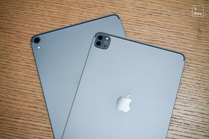 一眼可辨的區別來自背後的攝像頭,「浴霸」造型的相機模組也使得整機重量比上一代重了 3g。(12.9 英寸重了 10g)