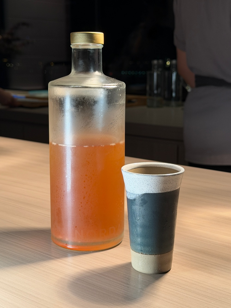 主廚對於本地食材的運用更在 「Fenix-fötter — 三黃雞鳳爪」 中發揮到極致。經過麥芽糖浸泡、風乾、燒烤及煙燻,三黃雞腿的風味被層層疊加,再以佛手柑與接骨木花特飲 「Hyldeblomst」 沖刷濃郁,既粗獷又細膩。