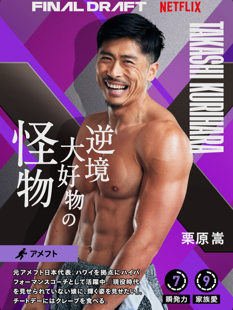 於在日本美式足球界,提到「追夢」的代名詞,栗原嵩(Takashi Kurihara) 絕對是不可繞過的名字。他在 X-League 賽場上馳騁的頂尖外接手(Wide Receiver),更是少數能讓美國球探記住名字、曾在巴爾的摩烏鴉隊(Baltimore Ravens)訓練營中展現爆發力的日本鬥士;於 Netflix 的《最終復活戰》節目中,他亮眼的表現火速吸引大量 fans,全新定義日本體育精神。